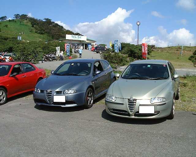 愛知県三河湾スカイライン遠望峰展望台駐車場にて恒例のミカスカが 開催され、GTAで参加しました。アルファは紅珊瑚さんのHPに集う、 147な皆様の参加が目立ちました。アルファ以外ではプジョー、 ルノー、ビートル、国産では圧倒的にインプレッサの参集状況が 目に付きました。 本日のミカスカの様子は こちら |