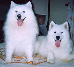 ニコル♀ 太秦 1995.3.14 二コルは ボール遊びが大好きなやんちゃ姫です。 私の家は京都の嵯峨・広沢といういところで 自然が多く、観光客がいっぱい来ます。 散歩コースもアスファルトよりは土が多いので 二コルは春は桜・夏は緑・秋は紅葉・冬は雪 と四季を満喫して散歩しております。 コーギーは弟のワンで、名前はキャスパルと 言います。別居していますが、1週間に1度 は実家のこちらにキャスを連れて来ます。 毎日散歩していますが、まだ、他のサモに 出会った事はないのです。 私も、是非サモ友が欲しいです! |