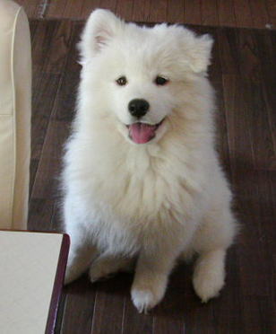フワフワな長毛 天使のような子サモ(エルナ)に釘付け。